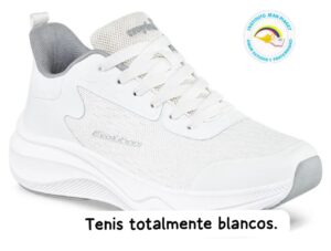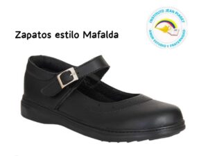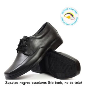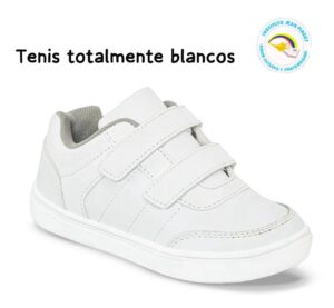 Los zapatos para niña son negros tipo mafalda, y el de los niños escolar negro, correa negra escolar en cuero, los tenis son totalmente blancos escolares sin ningún tipo de color.